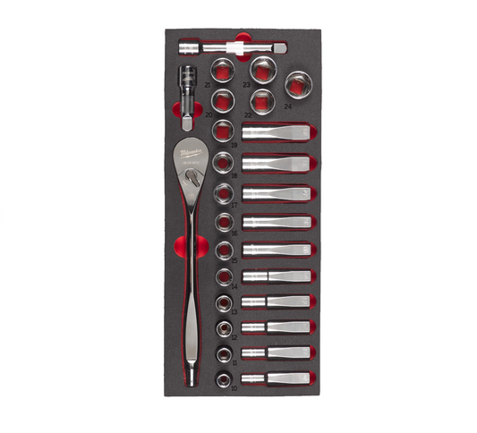 Schuim met ratel en 1/2" doppen 28 stuks Milwaukee