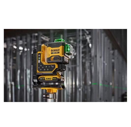 Dewalt DCLE34035D1 Green Self-Leveling Laser Level with Remote Control, 3 Lines, 360° XR, 18V, 2Ah Battery, and Charger