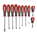 This set of 10 screwdrivers with "Tri-Lobe" handles from Milwaukee offers a complete and ergonomic solution for screwdriving and disassembly in mechanical, maintenance, assembly, or DIY projects. Thanks to its rubberized tri-lobe handle, it provides a comfortable and firm grip, even in applications requiring high torque. The tips are hardened and magnetized, improving screw grip and tool durability. The design includes details focused on comfort and efficiency with every use.