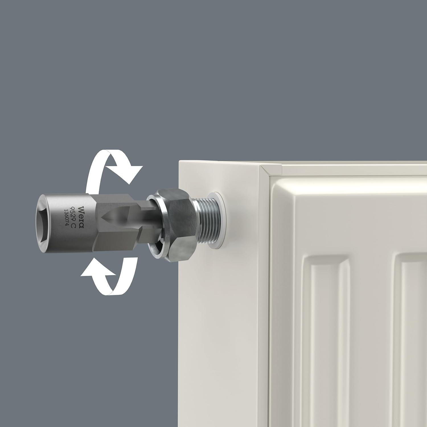 The Wera 9529 C SB 1/2" Step Wrench is a specialized tool designed for applications in heating, ventilation, and air conditioning (HVAC) systems, as well as sanitary installations. Its stepped design allows for efficient assembly and disassembly of radiator valves, thermostat bolted connections, and drains.
