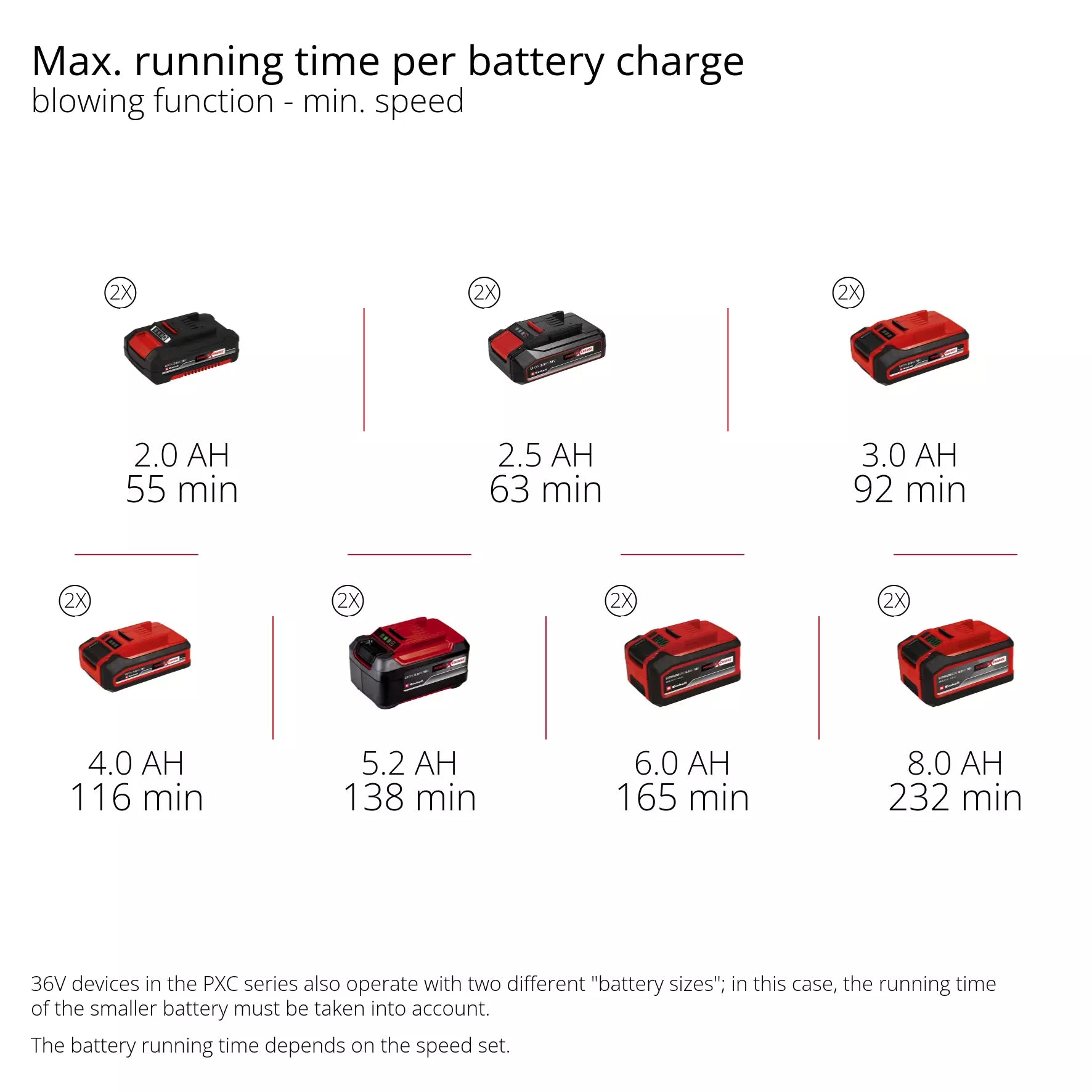 De Einhell GP‑LB 36/230 Li E BL‑Solo is een krachtige draadloze bladblazer met een koolborstelloze motor van 36 V (twee 18 V accu’s, niet inbegrepen). Hij heeft een luchtsnelheid van 230 km/u en een maximale luchtstroom van 890 m³/u, ideaal voor professioneel tuinwerk zonder kabels en met ergonomisch ontwerp.