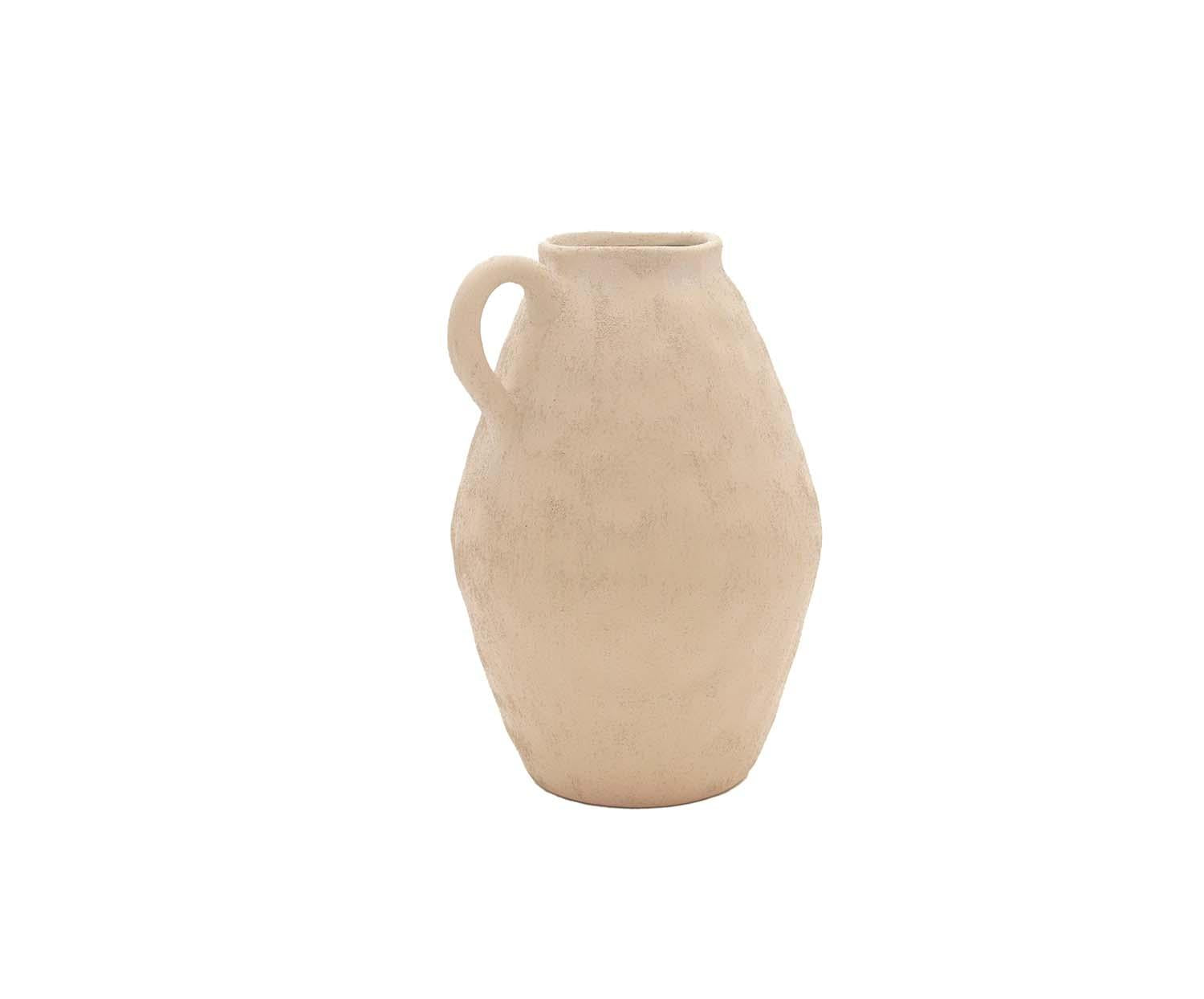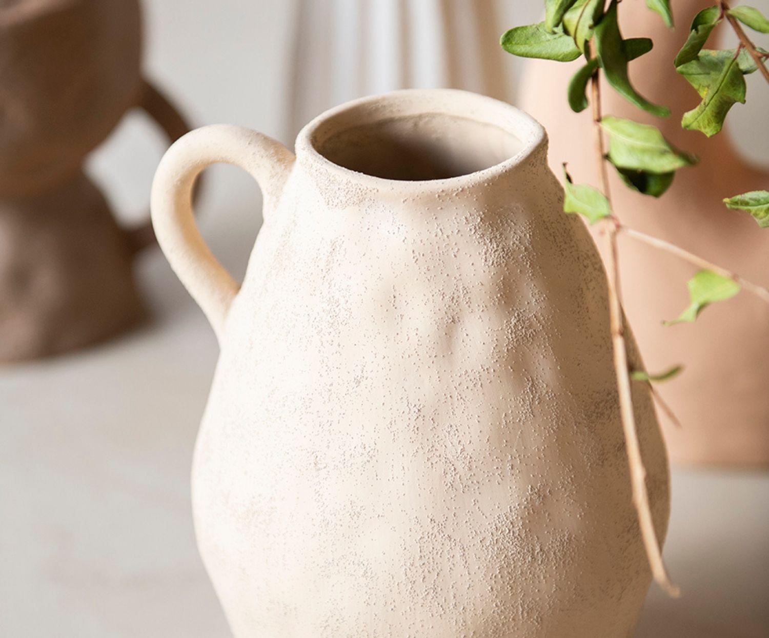 Decoratieve vaas van steengoed in beige tint, met een natuurlijke uitstraling en tijdloze lijnen. Het sobere en veelzijdige ontwerp brengt balans en warmte in verschillende interieurstijlen. De steengoedafwerking benadrukt het ambachtelijke karakter en voegt een subtiele textuur toe. Dankzij de neutrale kleur past de vaas moeiteloos in mediterrane, eigentijdse of minimalistische ruimtes, zowel als blikvanger als gecombineerd met andere decoratieve elementen.