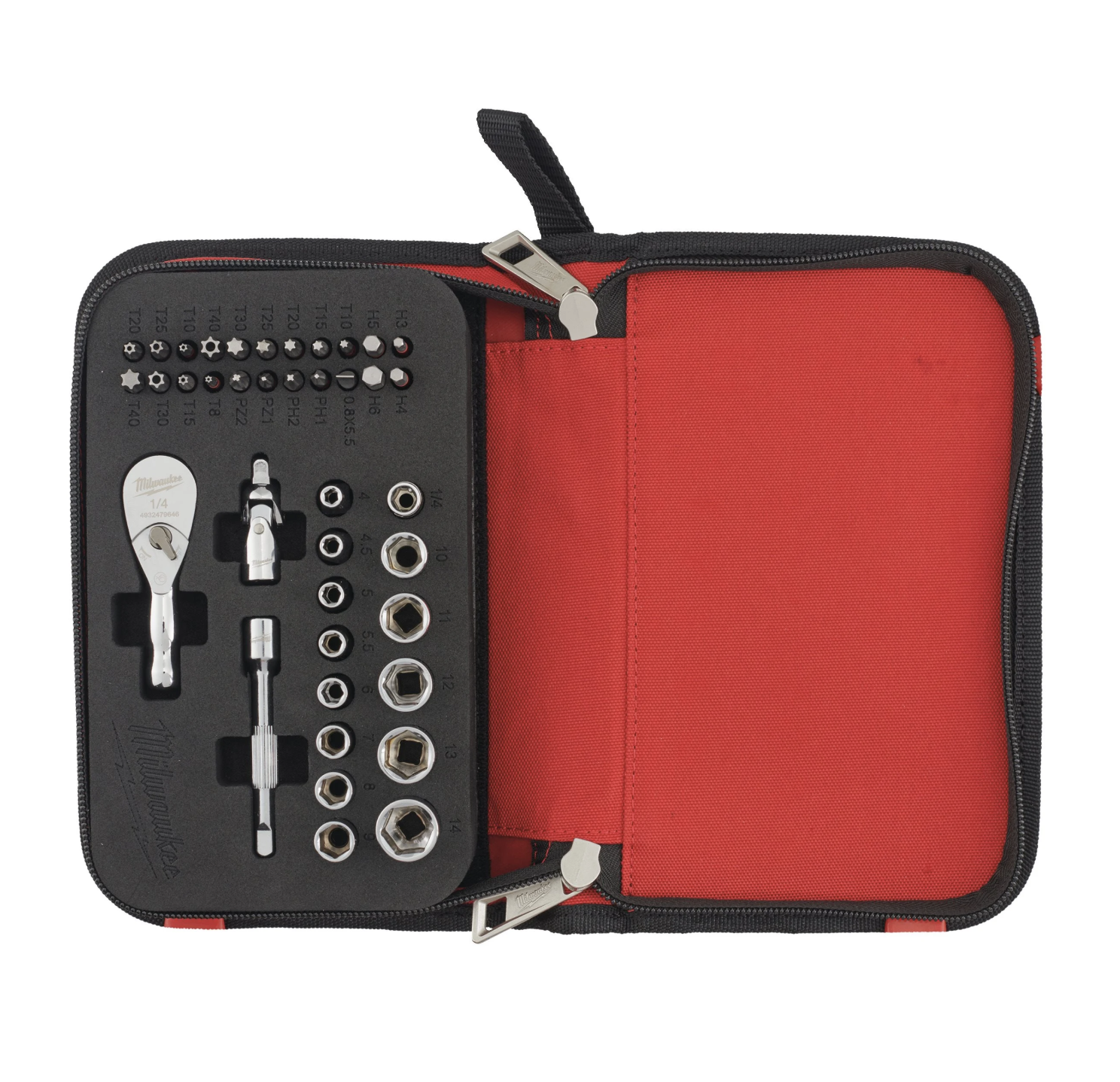 De Milwaukee 4932492672 is een compacte en veelzijdige set, ideaal voor monteurs, assemblagemedewerkers, onderhoudswerk of doe-het-zelf. Dankzij het kleine maar complete ontwerp kun je comfortabel in krappe ruimtes werken, met een alles-in-één oplossing van ratel, doppen en bits. Perfect voor zowel veeleisende toepassingen als snelle reparaties en montagewerk thuis of professioneel.