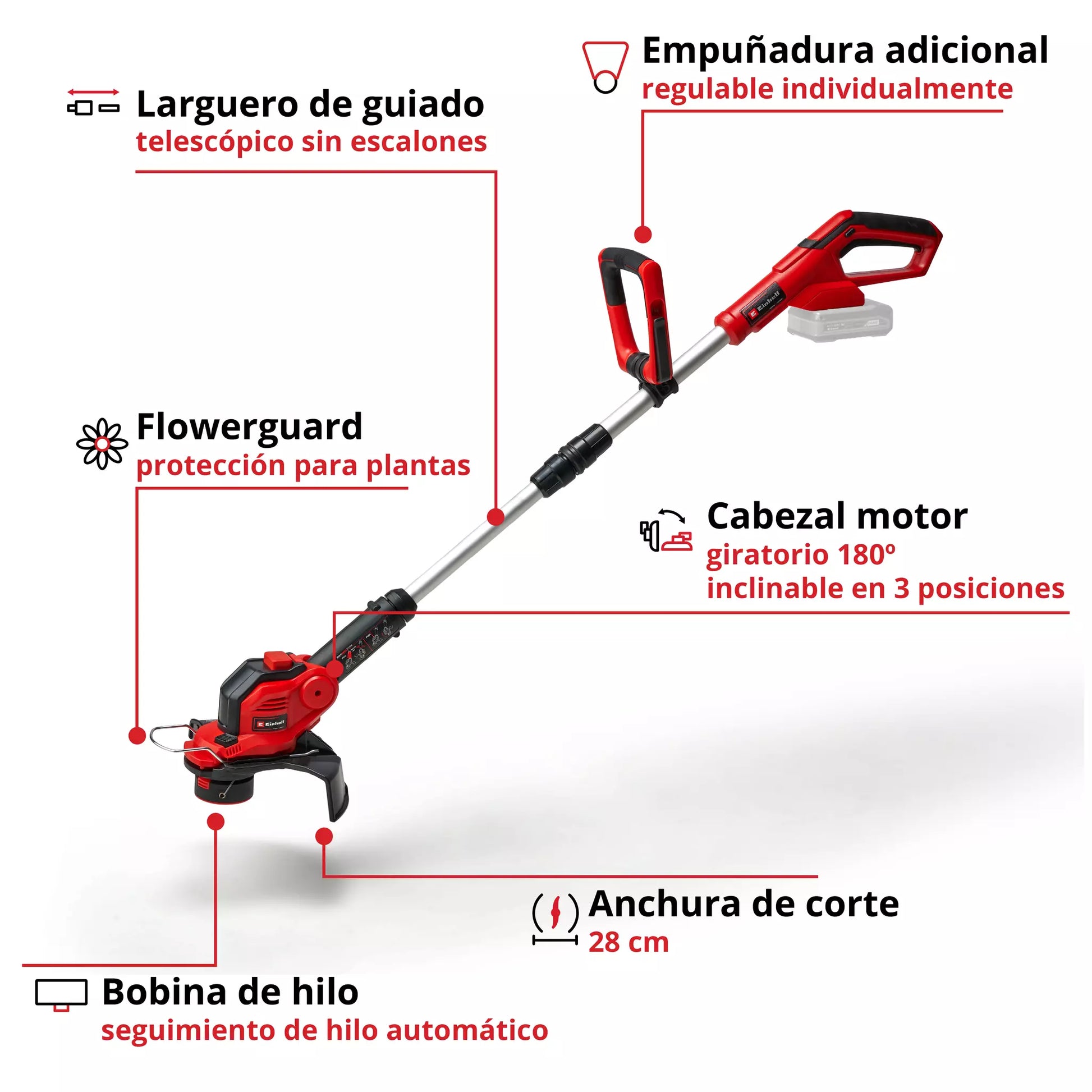 De GE-CT 18/28 Li-Solo draadloze grastrimmer van Einhell is ideaal voor het onderhoud van grasranden, smalle plekken en hoeken in de tuin. Dankzij het lichte gewicht en het gebruiksgemak van deze krachtige Power X-Change grastrimmer, kunnen deze lastige plekken moeiteloos worden bijgewerkt.