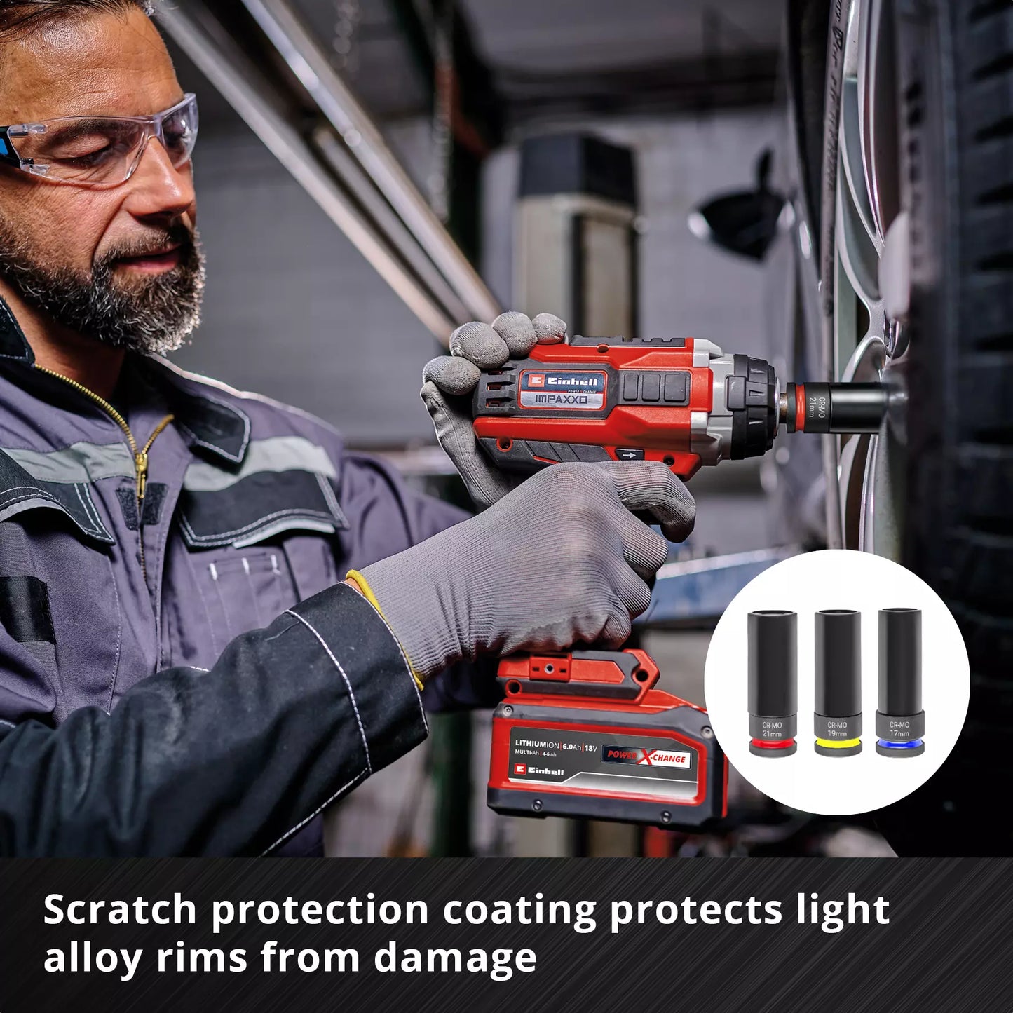 - Eenvoudige identificatie: Elke dop is voorzien van het Einhell-logo en de maat voor snelle herkenning.