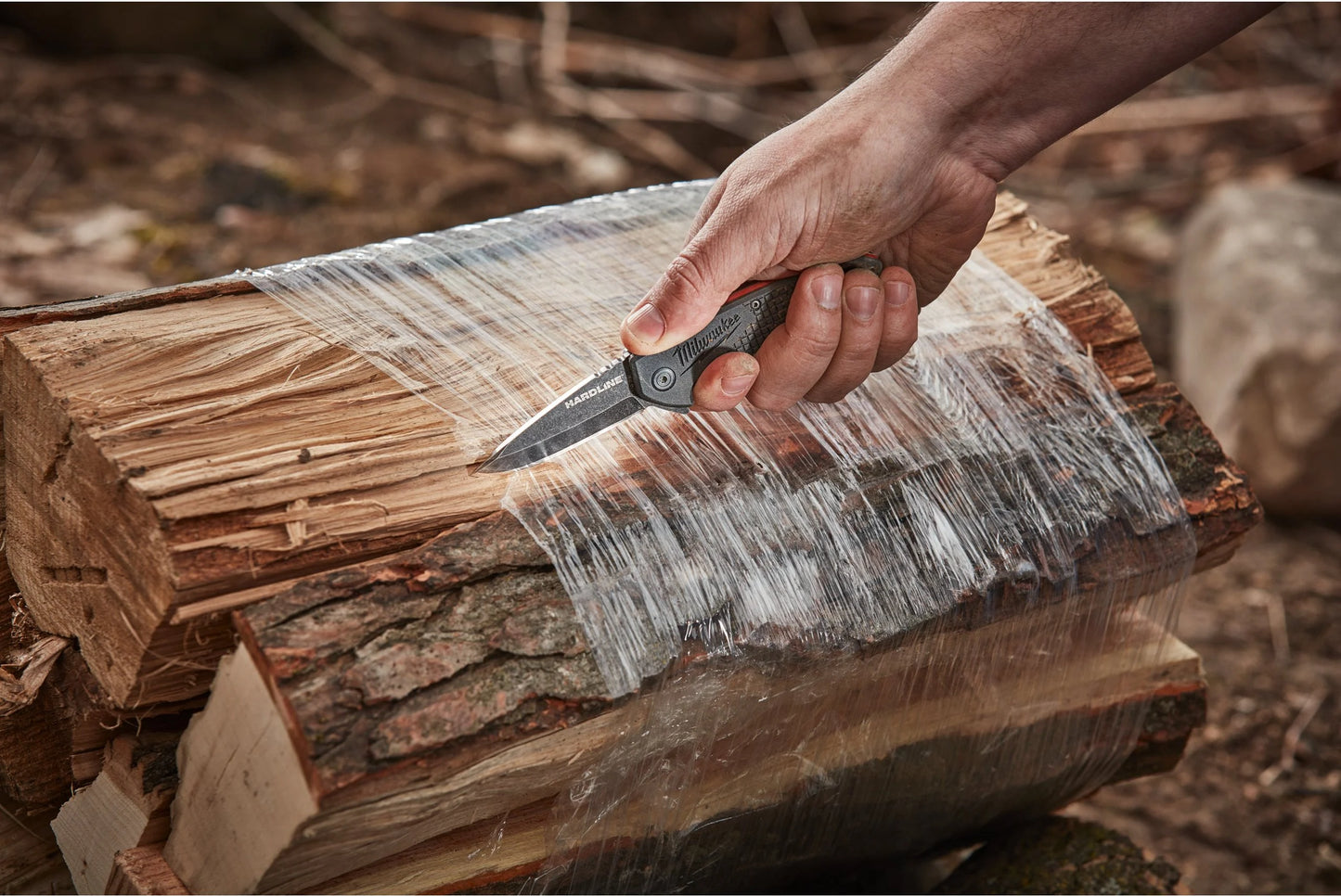 - Handvat met stalen structuur die het mes veilig vasthoudt wanneer het open is.